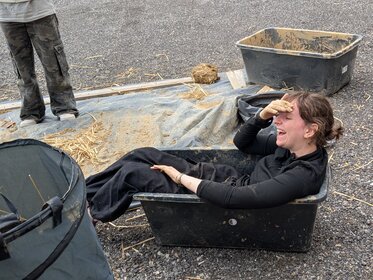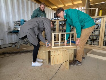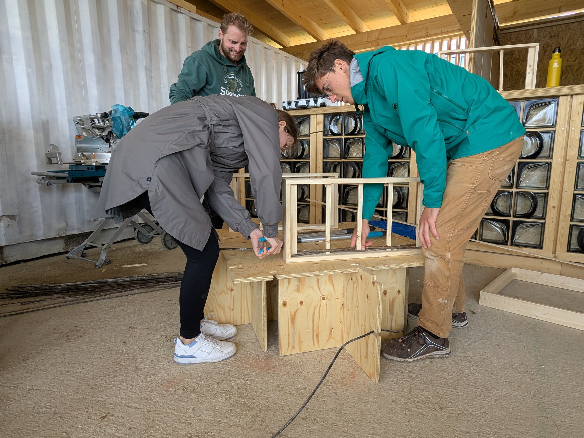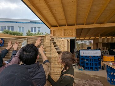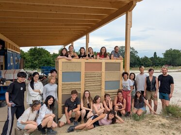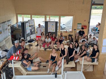 The results were as diverse as they were inspiring: a changing cabin built with traditional earthen construction techniques, creative seating structures from wood, and an outdoor landscape for exchange and interaction. Each project highlighted how resource-conscious design and circular thinking can be applied directly in practice.