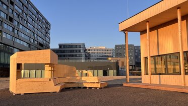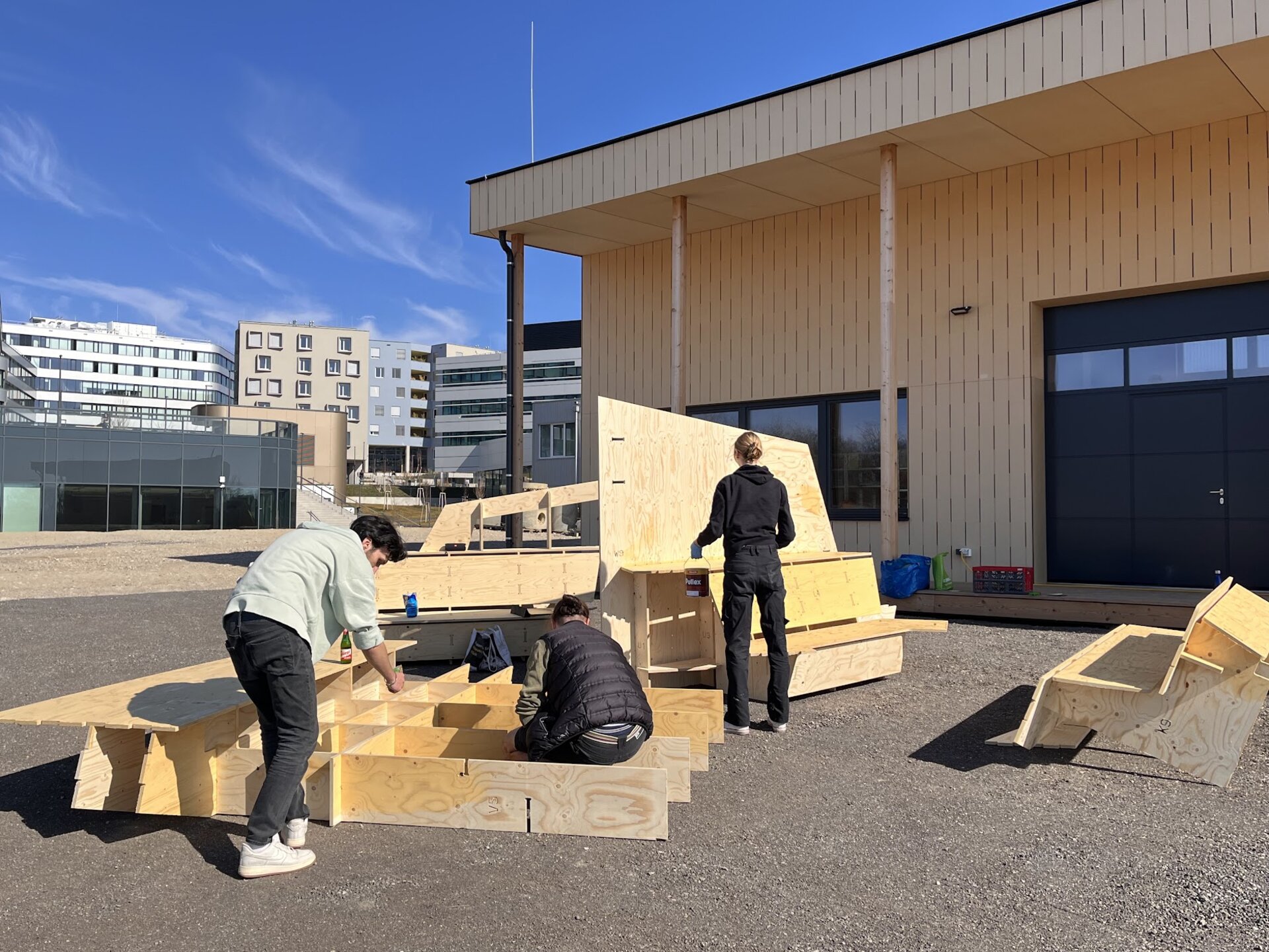 In the Architecture - Green Building bachelor’s program, students took parametric design to the next level—by designing the ultimate bar! In collaboration with Datab, they created a sleek structure made of cross-laminated timber, precisely milled to their digital designs. After assembly in the Green Building Lab, the bar was given a seasonal makeover: disassembled, transported outside, oiled up, and put back together—just in time for summer vibes! Now, it’s the perfect hotspot for cool drinks, warm nights, and legendary summer parties. Cheers to parametric perfection!