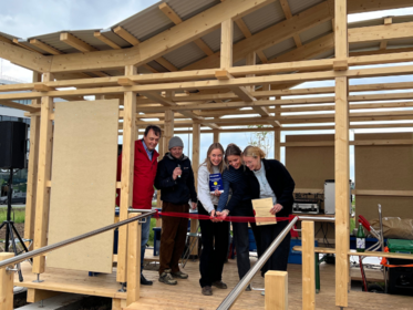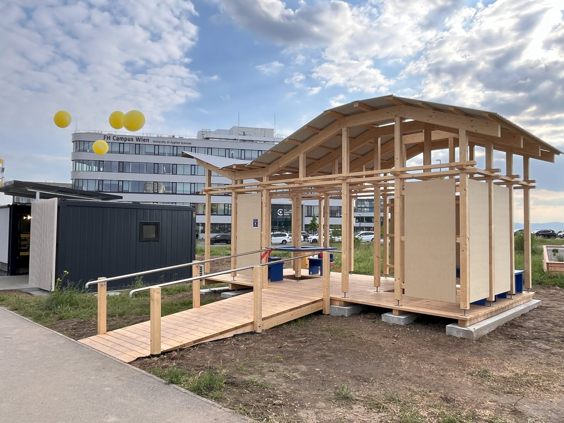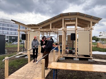 The winning team—Anna Lotta Frauenberger, Berit Henseling, and Gesine Elisa Haas, all students in the Bachelor’s program Architecture – Green Building at FH Campus Wien—impressed the jury with their innovative pavilion design. Their concept combines sustainability and functionality in an outstanding way: