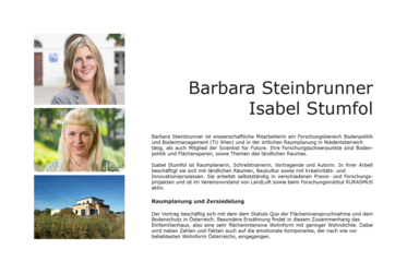 09.12.2025, 19:00: BARBARA STEINBRUNNER UND ISABEL STUMFOL – Raumplanung und Zersiedelung (Audi Max, Hochschule Campus Wien)