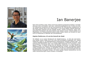 21.10.2025, 19:00: IAN BANERJEE – Digitale Plattformen, KI und die Zukunft der Stadt (Audi Max, Hochschule Campus Wien)